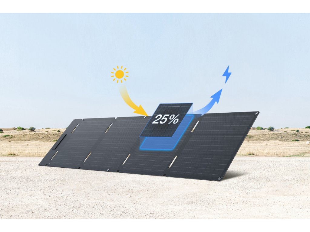 Prenosný panel EcoFlow 60W (typ C) využíva pokročilú technológiu solárnych článkov s vysokou účinnosťou, ktorá dosahuje 25%. Je ľahko prenosný a vďaka vysokej odolnosti a nízkym nárokom na údržbu je ideálnym zdrojom nabíjania pre aktivity mimo siete.