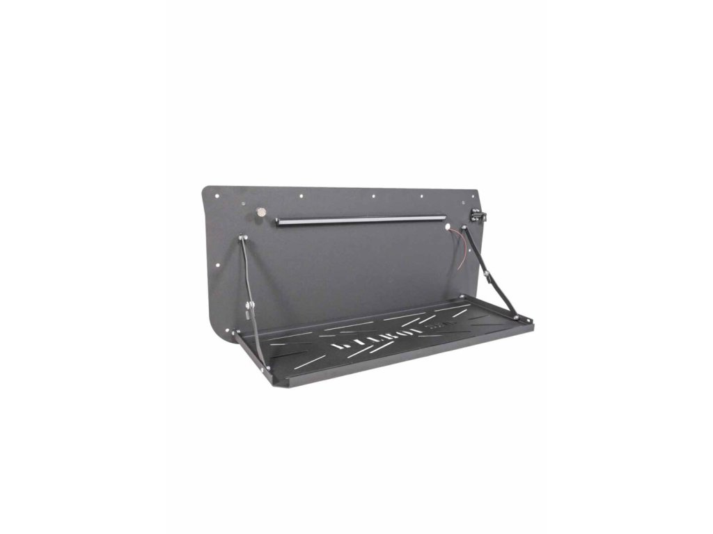 Je to funkčný a odolný doplnok, ktorý poskytuje pohodlné miesto na prípravu jedál, organizovanie vybavenia alebo prácu v teréne. Je namontovaný na dverách batožinového priestoru, ľahko sa inštaluje a je odolný voči terénnym podmienkam, vďaka čomu je ideálnym riešením pre nadšencov off-roadu a dlhé cesty.