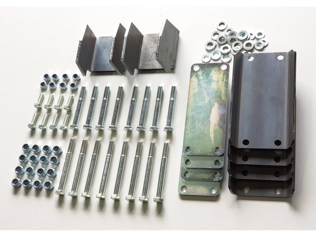 Hotové prvky so sadou skrutiek a matíc potrebné na pripevnenie prahov k rámu