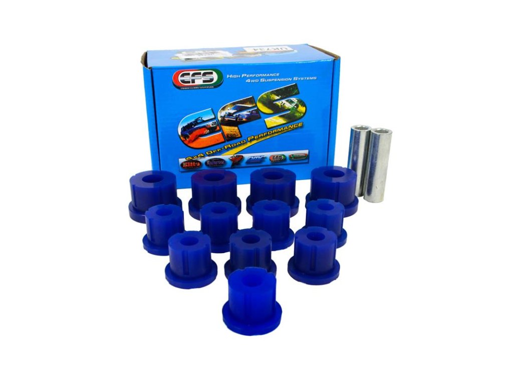 Polyuretánové pružinové puzdrá od austrálskej značky EFS sú vyrobené z vysoko kvalitných elastomérov (trieda 80 Duro), ktoré im poskytujú vysokú odolnosť a vynikajúce tlmiace vlastnosti. Majú špeciálne drážky, ktoré umožňujú rovnomerné mazanie.