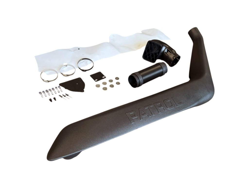 Šnorchel pre Nissan Patrol Y60. Súprava obsahuje všetko, čo potrebujete na zostavenie: pásy, spojovacie prvky, skrutky atď. Šnorcky ORE4x4 sú kvalitné výrobky, ktoré perfektne sedia, vyrobené z materiálu LLPDE, všetky kovové prvky sú pozinkované alebo vyrobené z nehrdzavejúcej ocele.