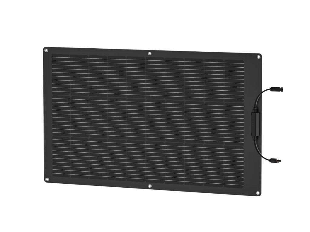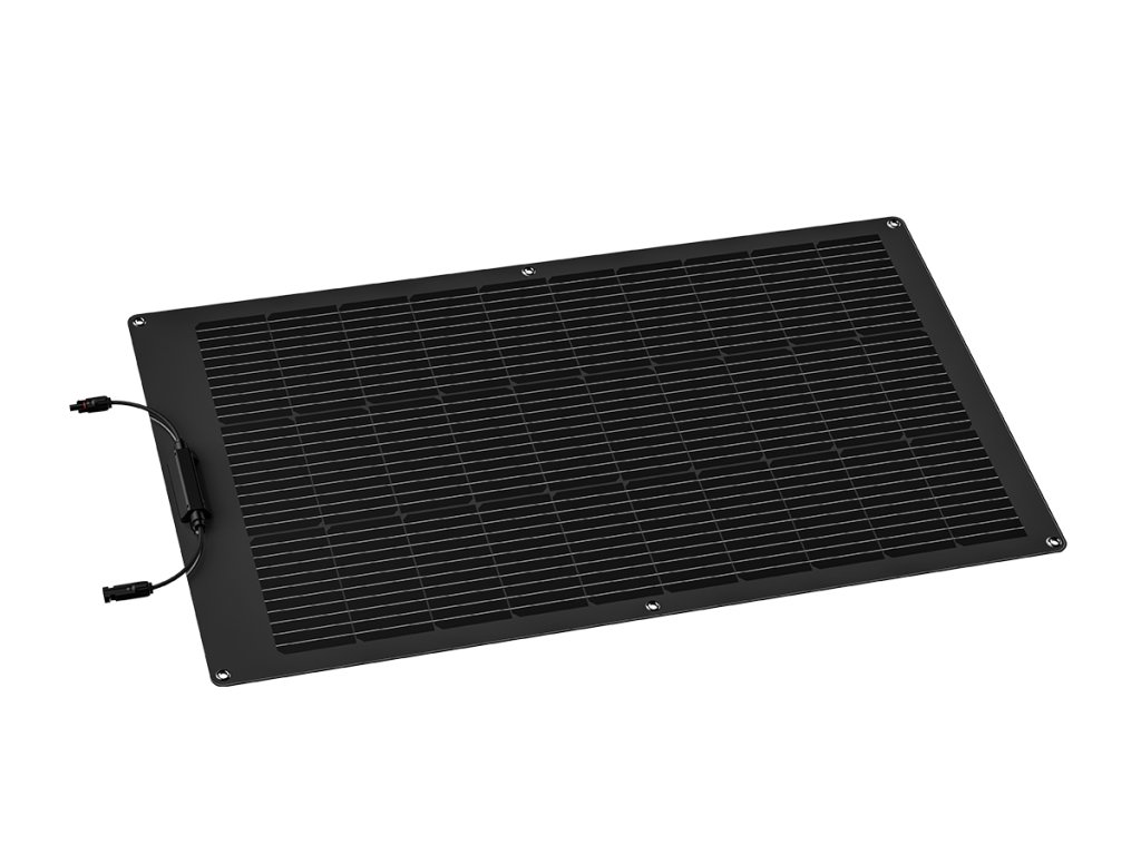 Flexibilný solárny panel EcoFlow s výkonom 100 Wp. Panel je možné umiestniť aj na zakrivené povrchy, ponúka vysokú účinnosť 23% a ochranu pred vonkajšími vplyvmi. Samozrejmosťou sú prémiové solárne konektory MC4.