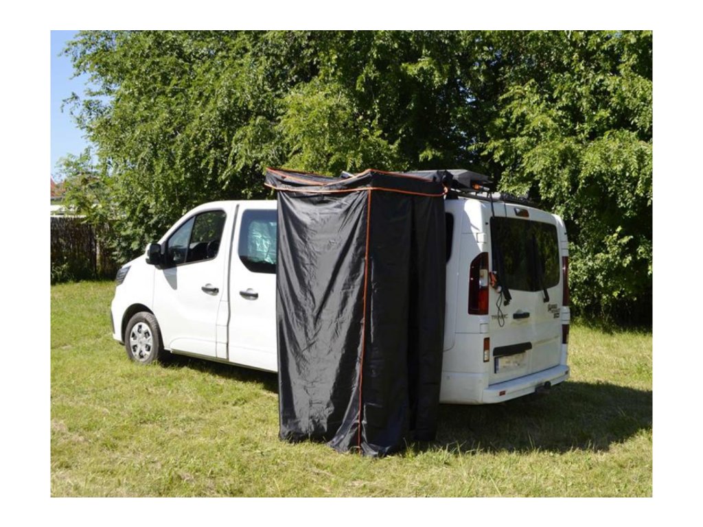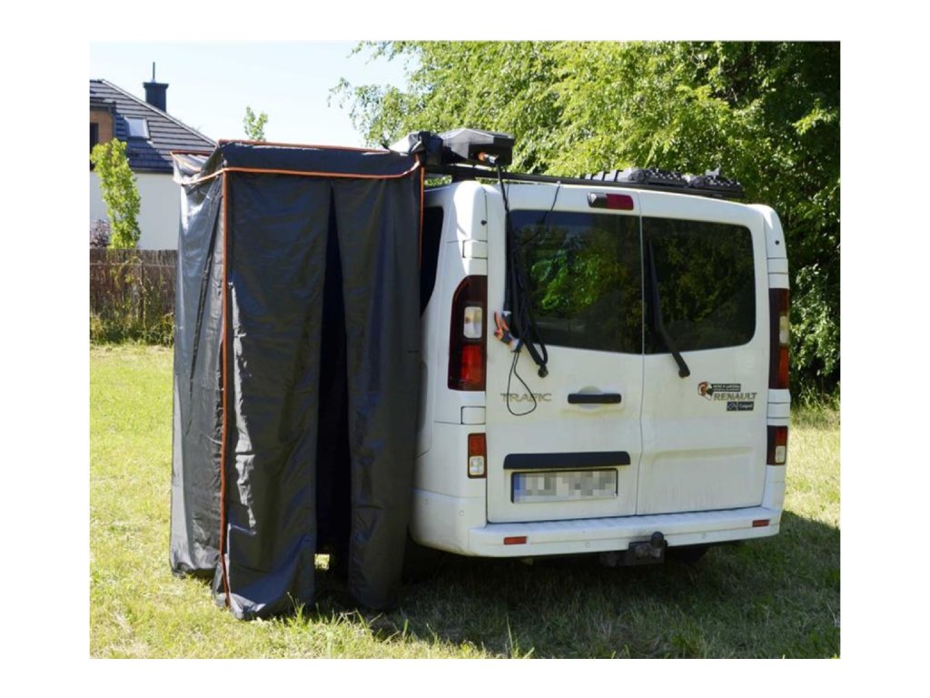 Všestranné využitie – bočná kabína, slúžiaca ako sprcha, prezliekáreň alebo prenosná toaleta, jednoduchá montáž na terénne vozidlá, dodávky, karavany.