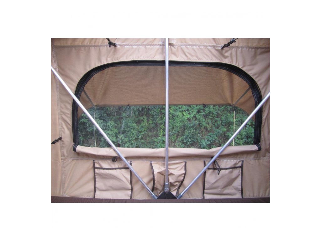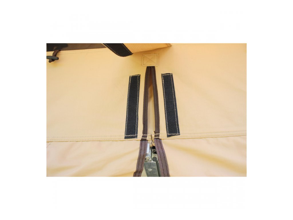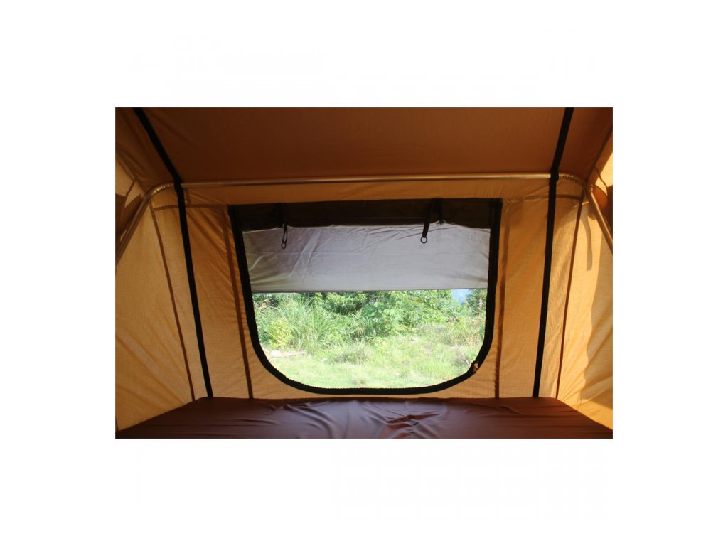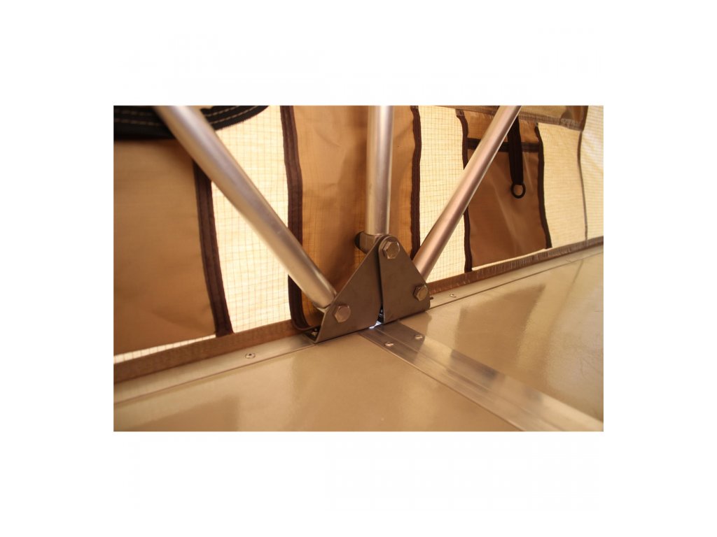 prvky majú eloxovanú povrchovú úpravu pre väčšiu odolnosť proti korózii a atraktívny vzhľad • Sada obsahuje montážny materiál, kľúče, rebrík, plachtu • Rozmery stanu: 310x140x126 cm • Rozmery v zloženom stave: 143x124x28 cm • Farba: piesková s hnedou plachtou • Všetky konzoly a pánty sú vyrobené z nehrdzavejúcej ocele • Hlavný materiál: vodeodolná polyuretánová plachta impregnovaná RipStop 280gr • Rám: hliníkový rám s plachtou a matracom • 6 cm hrubý matrac z peny s vysokou hustotou s odnímateľným poťahom • Trojita: 420D Oxford polyester potiahnutý polyuretánová vrstva • Okenné otvory s certifikovanými moskytiérami CE • Vodotesný kryt stanu (na nosiči) s obojstrannou páskou "velcro", odolný voči UV žiareniu • Čistá hmotnosť: 45 kg, hrubá hmotnosť: 55 kg