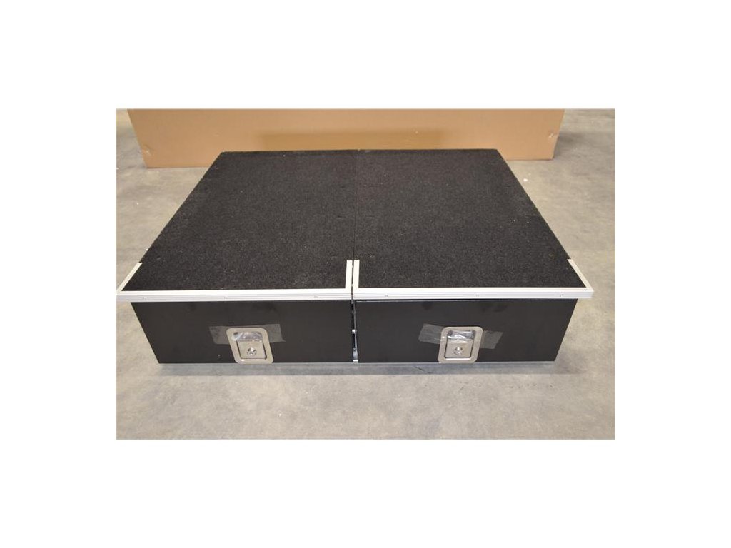 Horná časť konštrukcie je vyrobená z VODEODOLNEJ PREGLEJKY, POKRYTEJ ČIERNYM KOBERCOM. Hrany sú chránené pred poškodením hliníkovými rohmi.