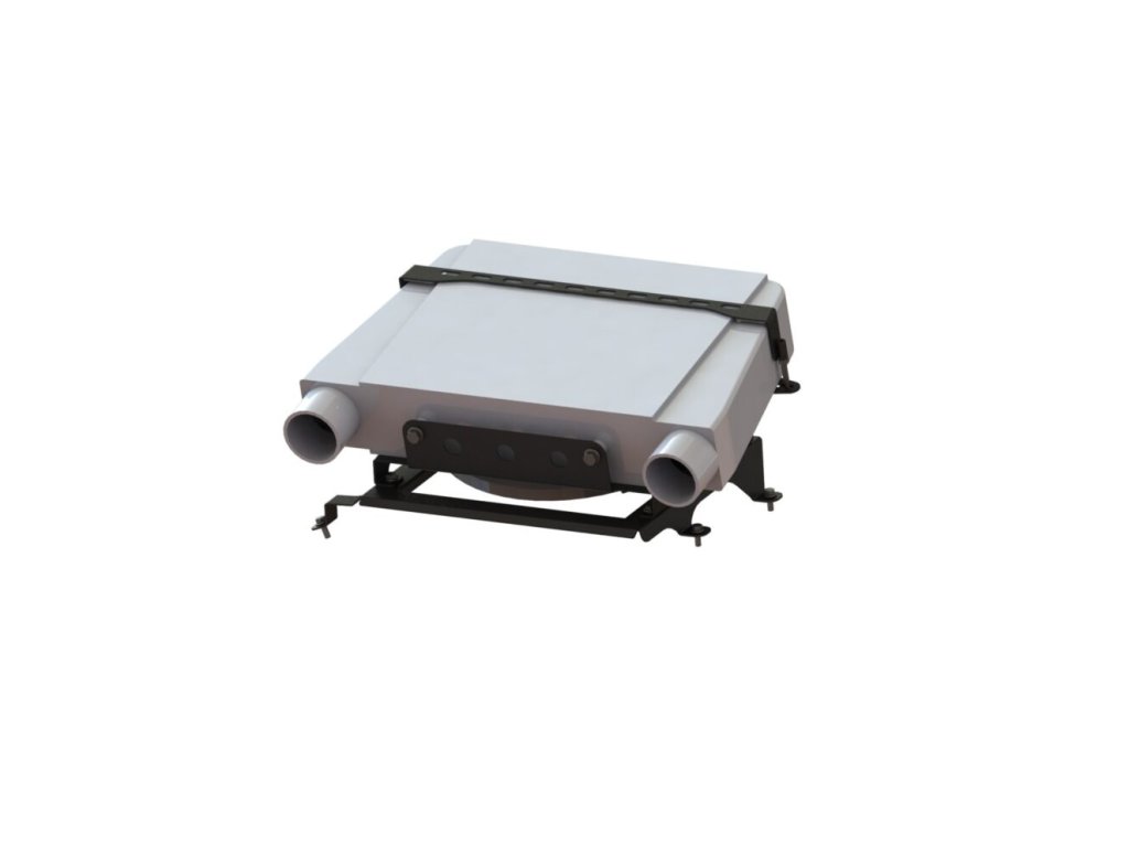 Súprava hornej montáže medzichladiča 330x280x76 s ventilátorom určená na montáž na motory BMW M57 3.0d D2, D3 v Nissan Patrol Y61. Pre správnu inštaláciu je potrebné zväčšiť prívod vzduchu na odsávači pár. Súčasťou držiaka je miesto na zaskrutkovanie ventilátora Spal a medzichladiča FMIC, ktoré sú súčasťou balenia.